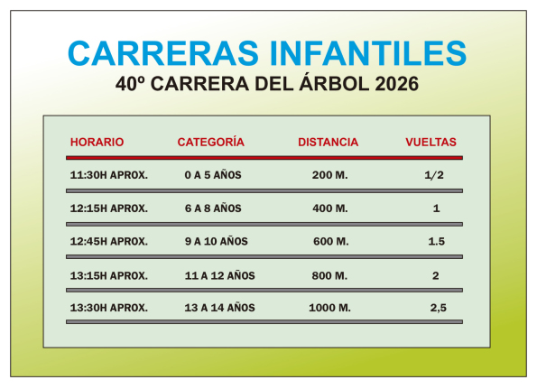 ORDEN DE LAS CARRERAS INFANTILES Y DISTANCIAS